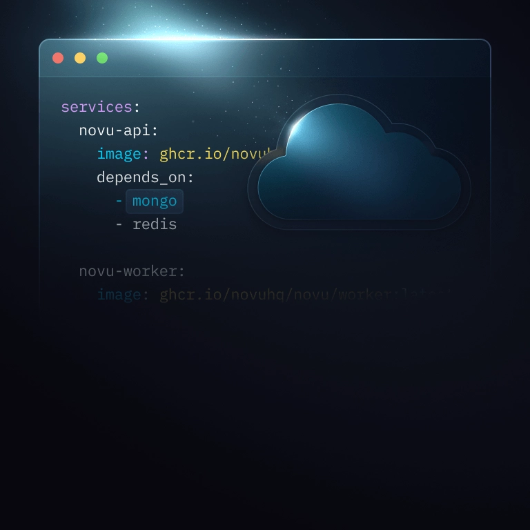 Run Novu on your own infrastructure with Docker Compose. Move between cloud and self-host anytime with the same codebase.