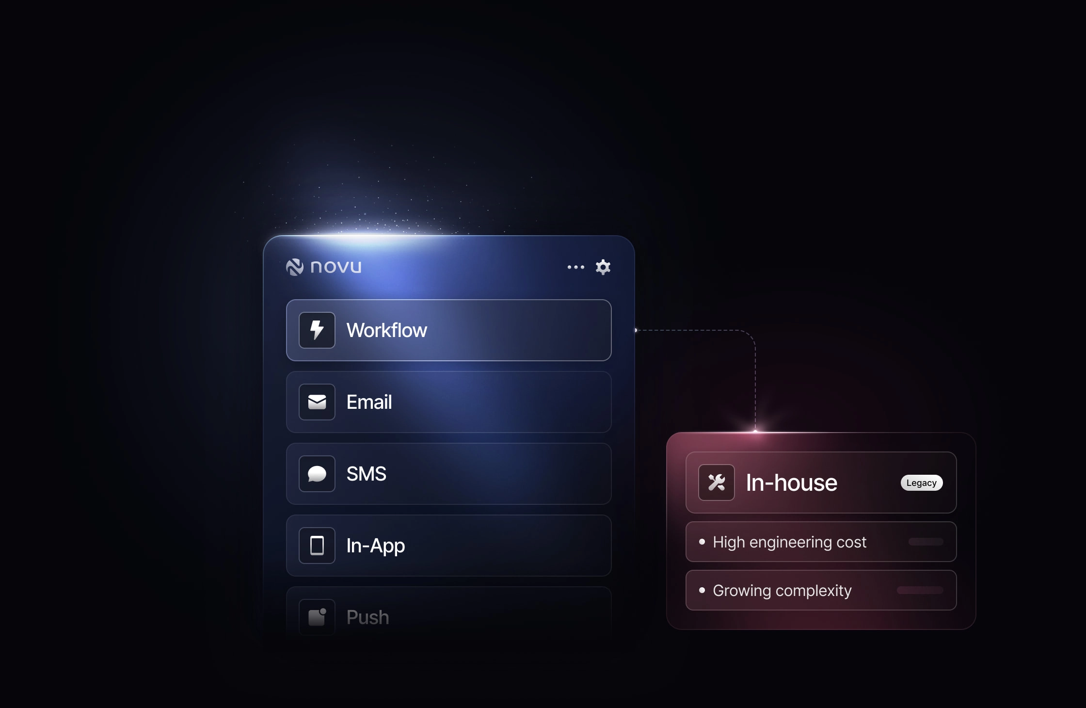 Once notifications expand beyond a single send flow, teams need multi-channel workflows, delays, digests, throttling, conditions, and provider control. Novu has solved this — just plug and play.